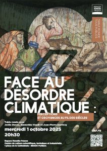 Table ronde avec Joëlle Ducos (professeure de linguistique et de philologie médiévales, Sorbonne Université), Anouchka Vasak (maîtresse de conférences en littérature française, université de Poitiers et coresponsable séminaire Perception du climat à l’École normale supérieure) et Jean-Pierre Devroey (professeur émérite d’histoire médiévale, université libre de Bruxelles, et membre de l’Académie royale de Belgique).